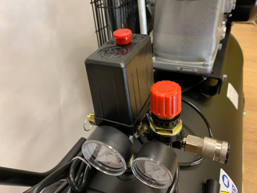 Два манометра для измерения давления в ресивере и рабочего давления.